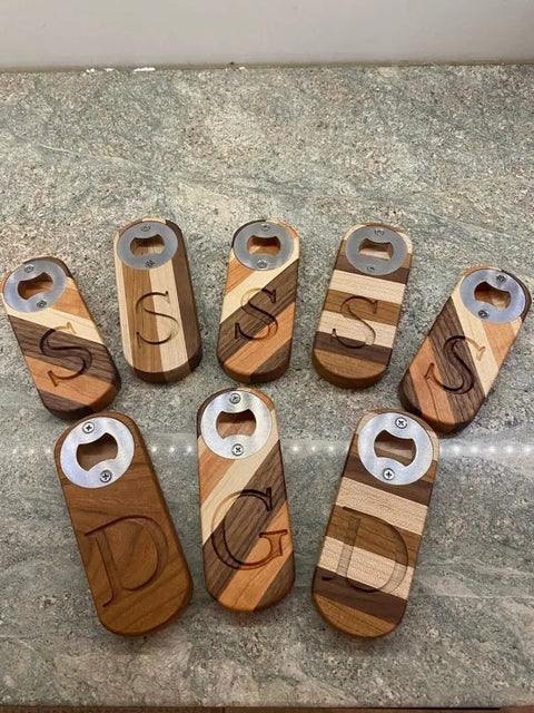 Bottle Openers are always necessary for parties, get-togethers and just everyday use, but these bottle openers will give you the opportunity to show off to your guests, while you also help support a local wood shop!